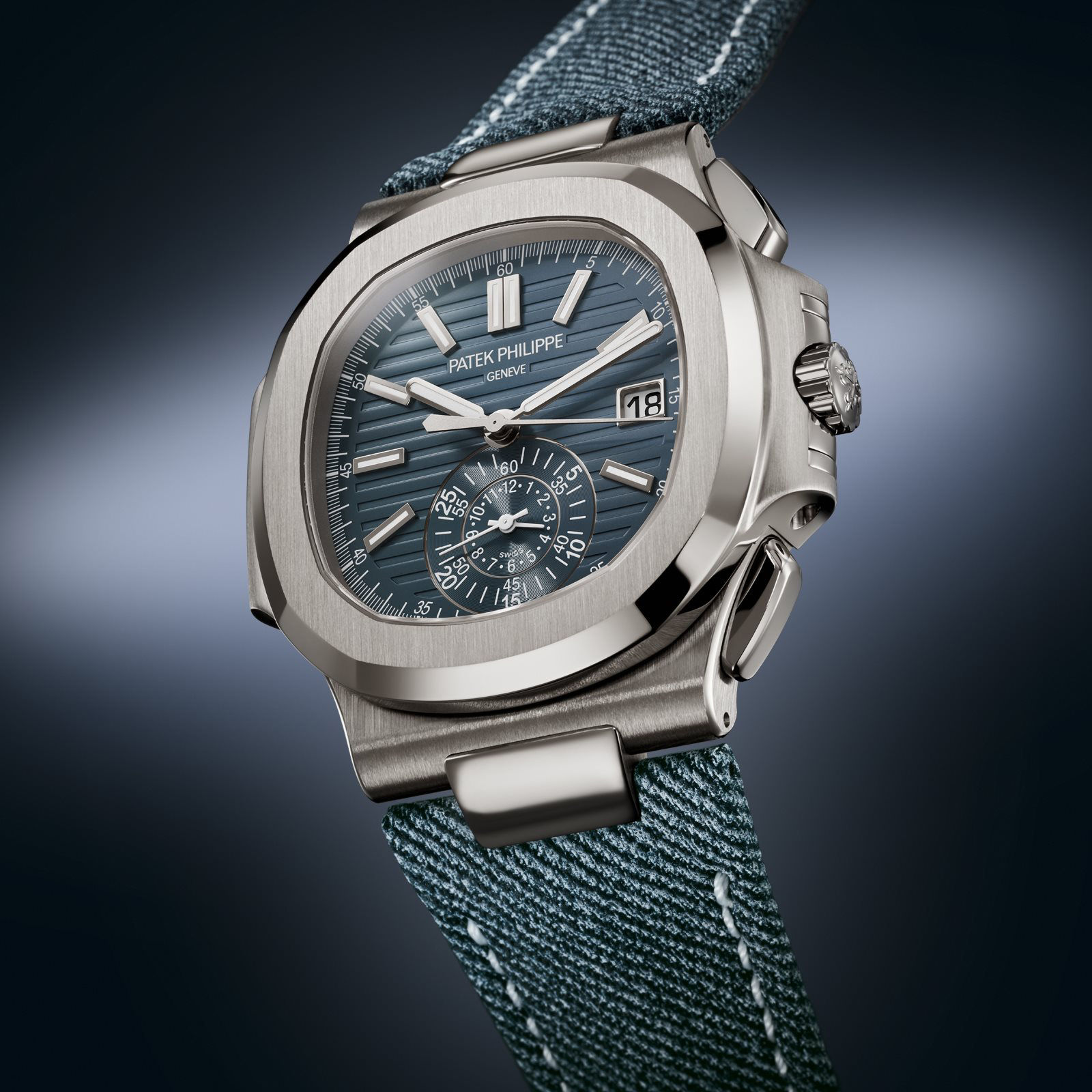 Fans are most interested in the creation of the Nautilus and Aquanaut in more precious metal variants. The 5980/60G flyback chronograph in white gold now comes with an opaline blue-gray dial with a matching blue-gray denim-patterned calfskin strap and an additional blue-gray composite material strap with fabric pattern. The entire list of releases can be found here.